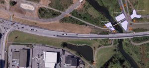 Hér fyrir neðan er myndband sem sýnir þegar brúnni er lyft af stöplum sínum.