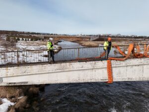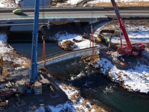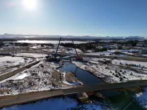 Vinna við niðurrif á gömlu göngubrúnni yfir Elliðaár við Dimmu hófst í vikunni og hefur brúin nú lokið hlutverki sínu eftir áralanga þjónustu við gangandi og hjólandi vegfarendur. Ný og glæsileg brú hafði þegar verið tekin í notkun en hún er staðsett um 100 metrum fyrir neðan þá gömlu. Áætlað er að vinnunni ljúki fyrir páska og á meðan þarf að loka aðliggjandi stígum.